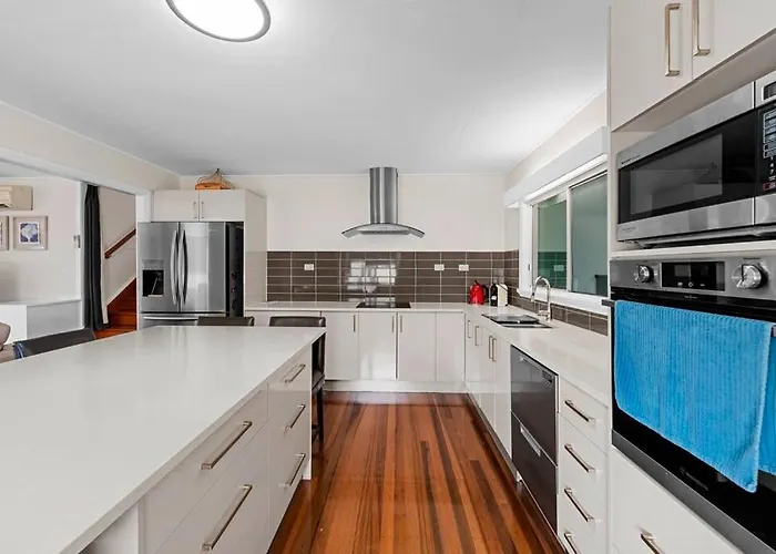 La villa Manta Ray On The Beach Kurrimine Beach, situada a unos 4 km del Parque nacional Montaña Clump, cuenta con un patio con vistas al mar.